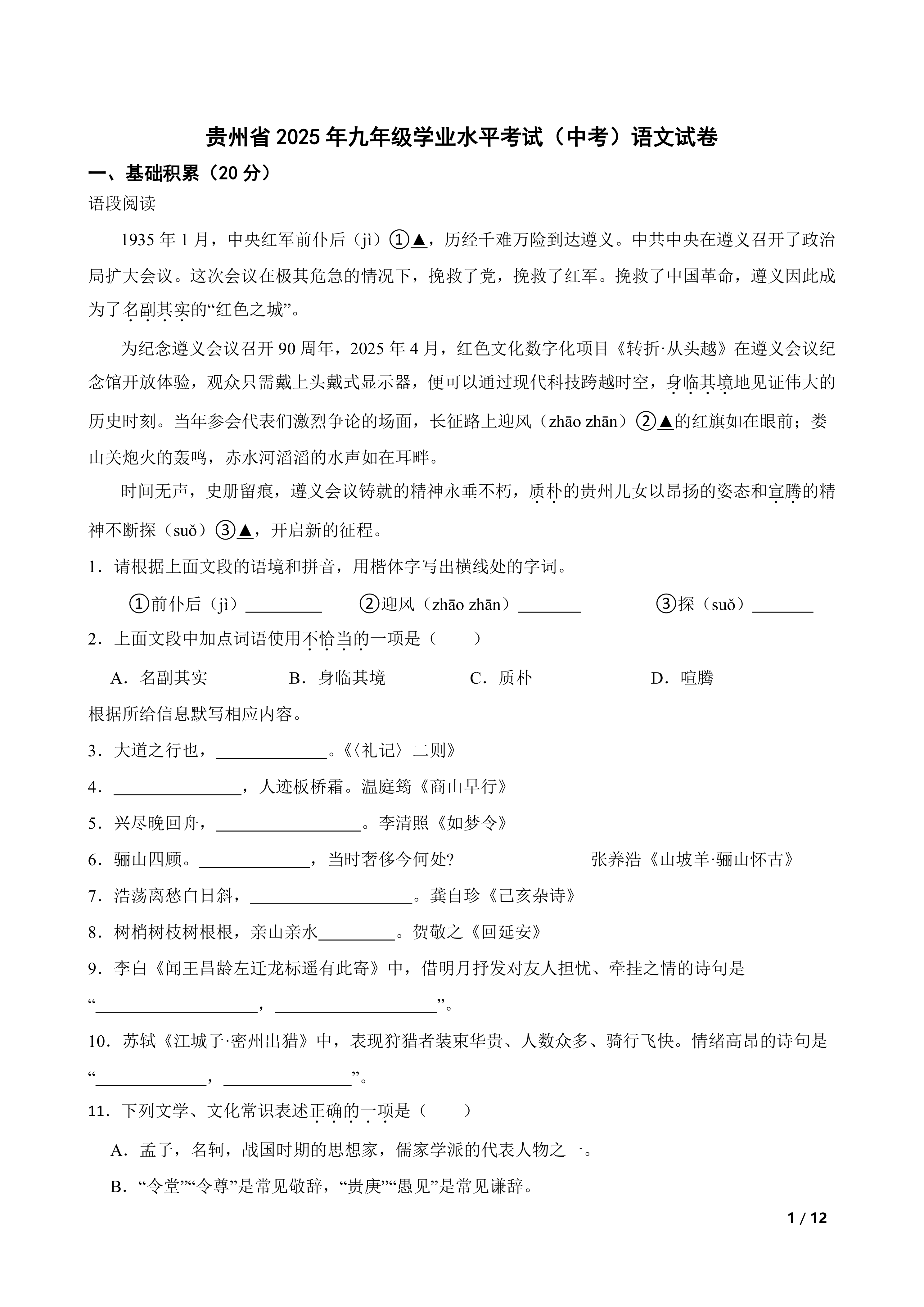 [中考真题]贵州省2025年九年级学业水平考试(中考)语文试卷 时间:2025-07-01 热度:°C 加入收藏 我要投稿 点赞() 使用智能AI助手解答的问题 中考真题yuwen 上一篇:[中考真题]江苏省连云港市2025年中考数学真题试题 下一篇:返回列表