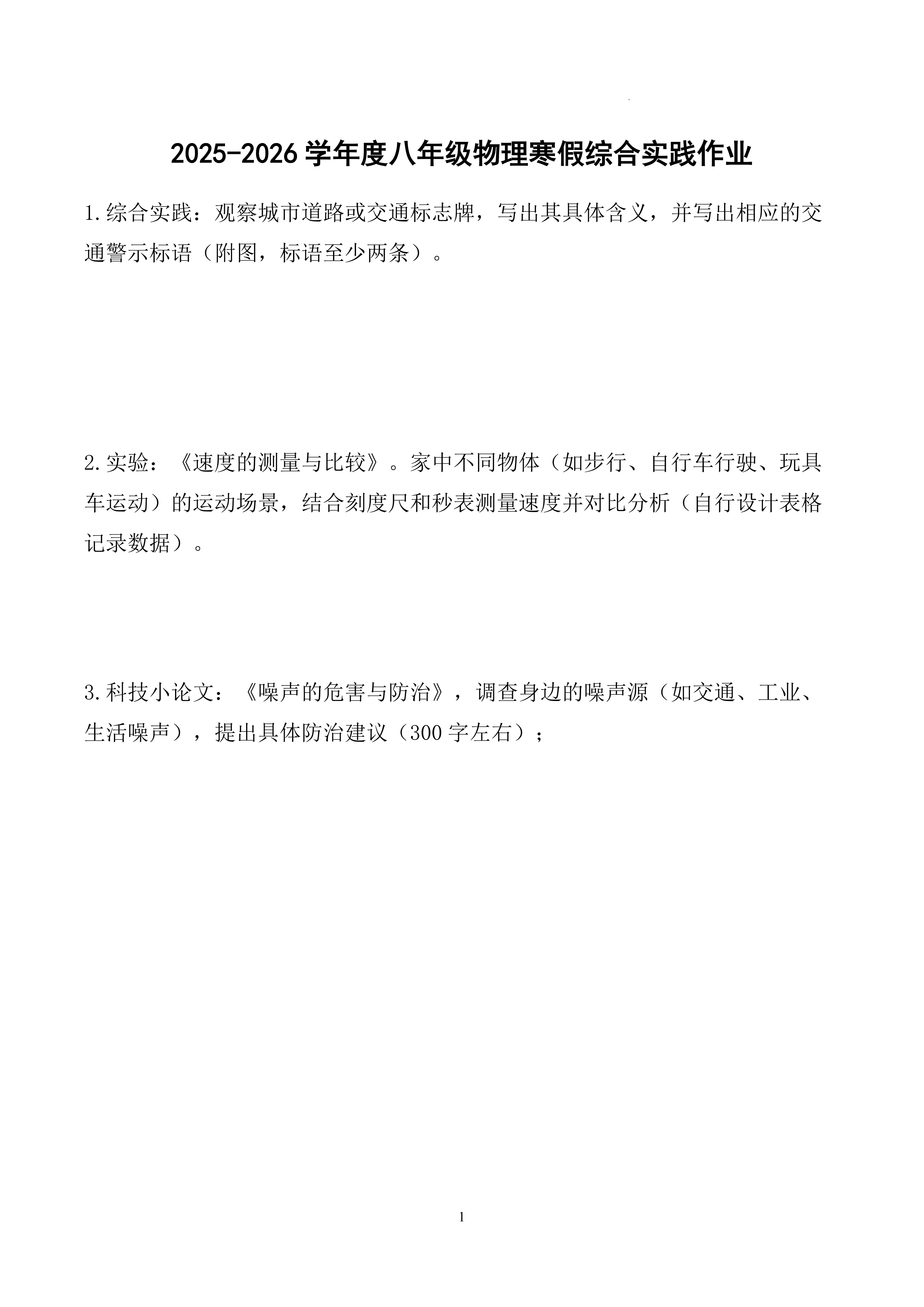 2025-2026学年八年级物理寒假综合实践作业 时间:2026-02-26 热度:°C 加入收藏 我要投稿 点赞() 使用智能AI助手解答的问题 20252026wuli 上一篇:2026年八年级历史寒假特色作业 下一篇:返回列表