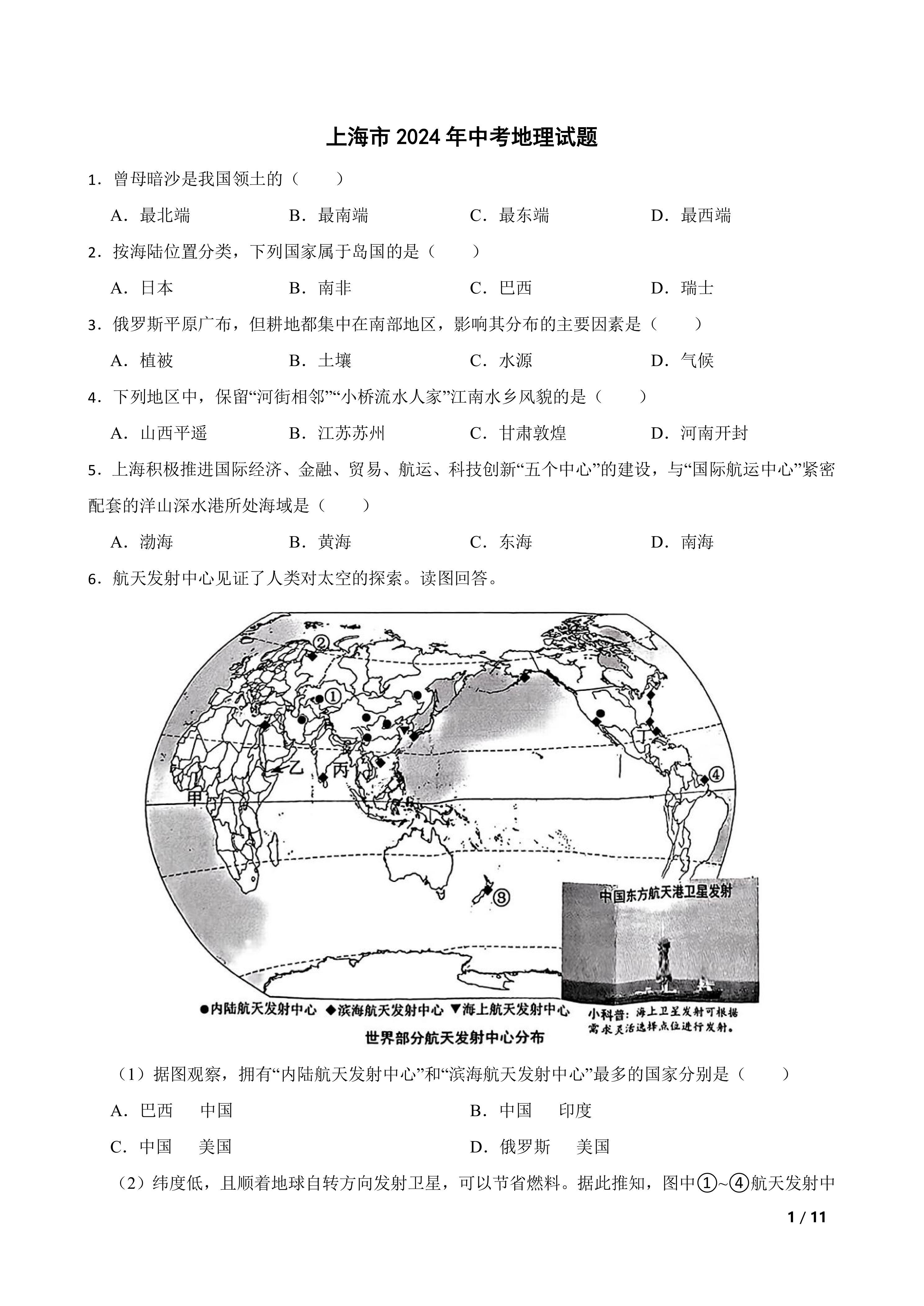 上海市2024年中考地理试题 时间:2025-04-02 热度:°C 加入收藏 我要投稿 点赞() 使用智能AI助手解答的问题 dili地理试题2024 上一篇:广东省2024年中考地理试卷 下一篇:返回列表