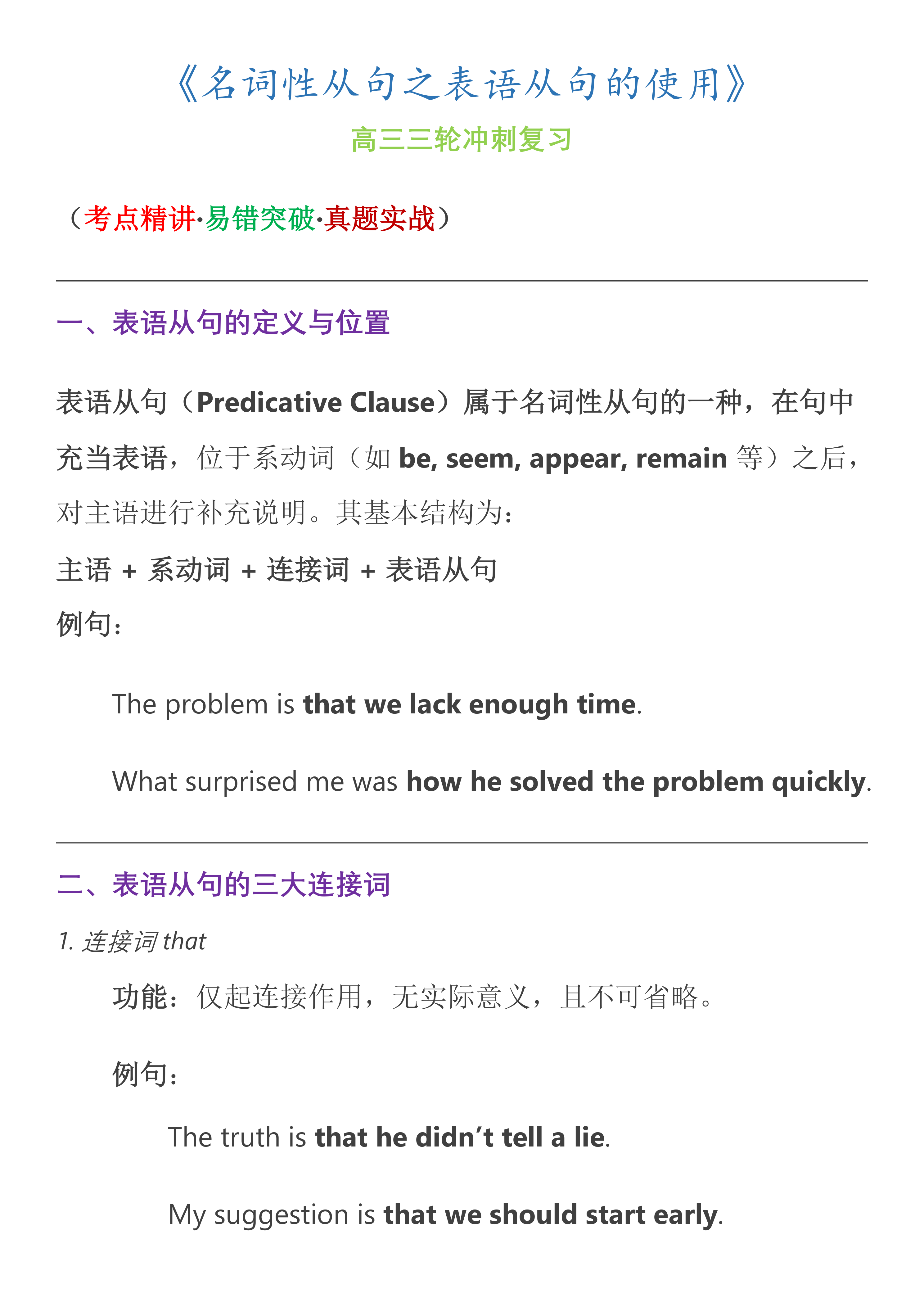 2025届高三下学期英语二轮复习名词性从句之表语从句的使用讲义 时间:2025-04-05 热度:°C 加入收藏 我要投稿 点赞() 使用智能AI助手解答的问题 yingyu表语从句 上一篇:高三英语易错题汇总 下一篇:返回列表