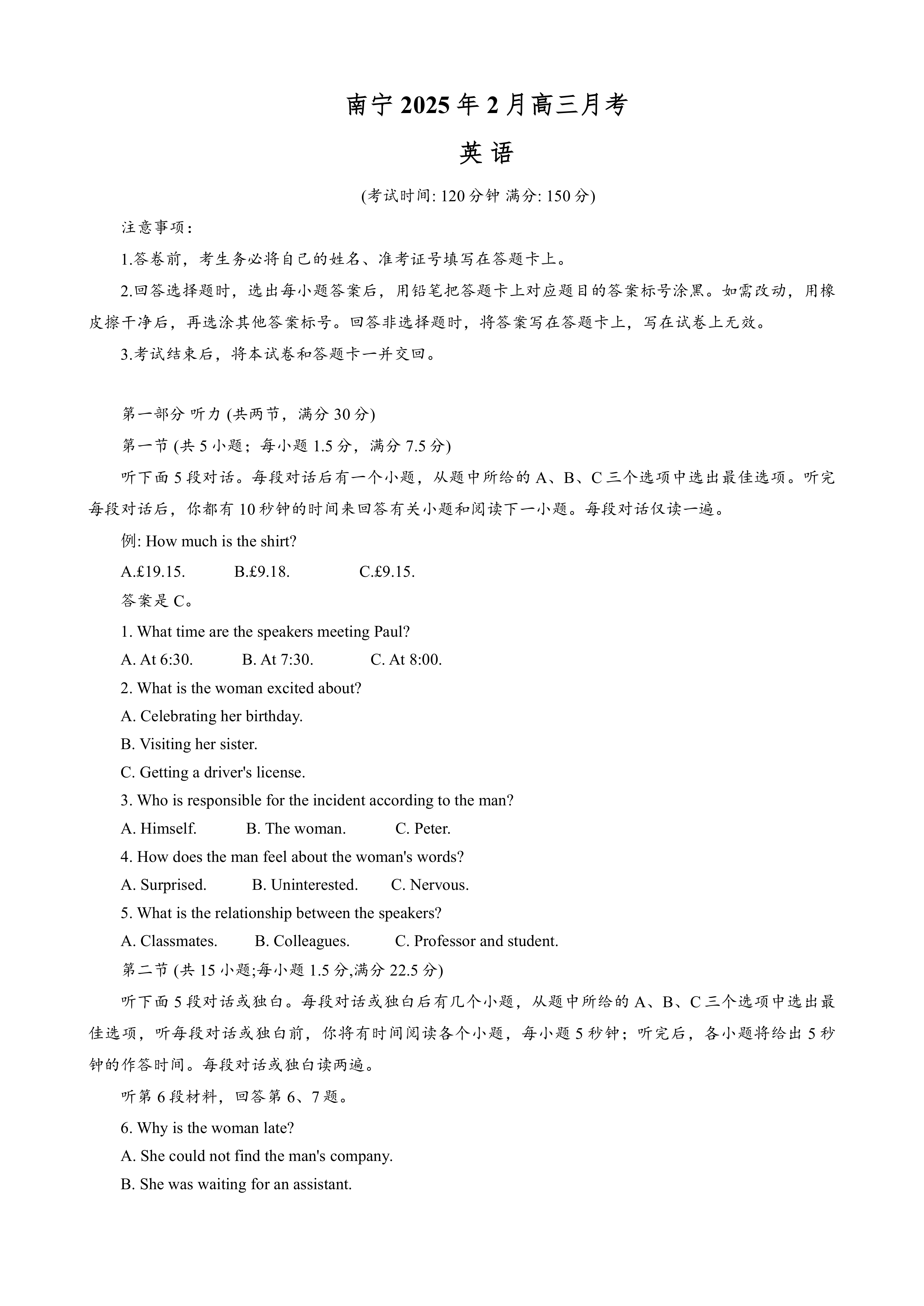 广西南宁市2024-2025学年高三2月月考英语试题(含答案,无听力原文及音频) 时间:2025-04-05 热度:°C 加入收藏 我要投稿 点赞() 使用智能AI助手解答的问题 yingyu20252024 上一篇:2025届高三英语专项复习人教版(2019)七册书介词搭配汇总及练习(含答案) 下一篇:返回列表