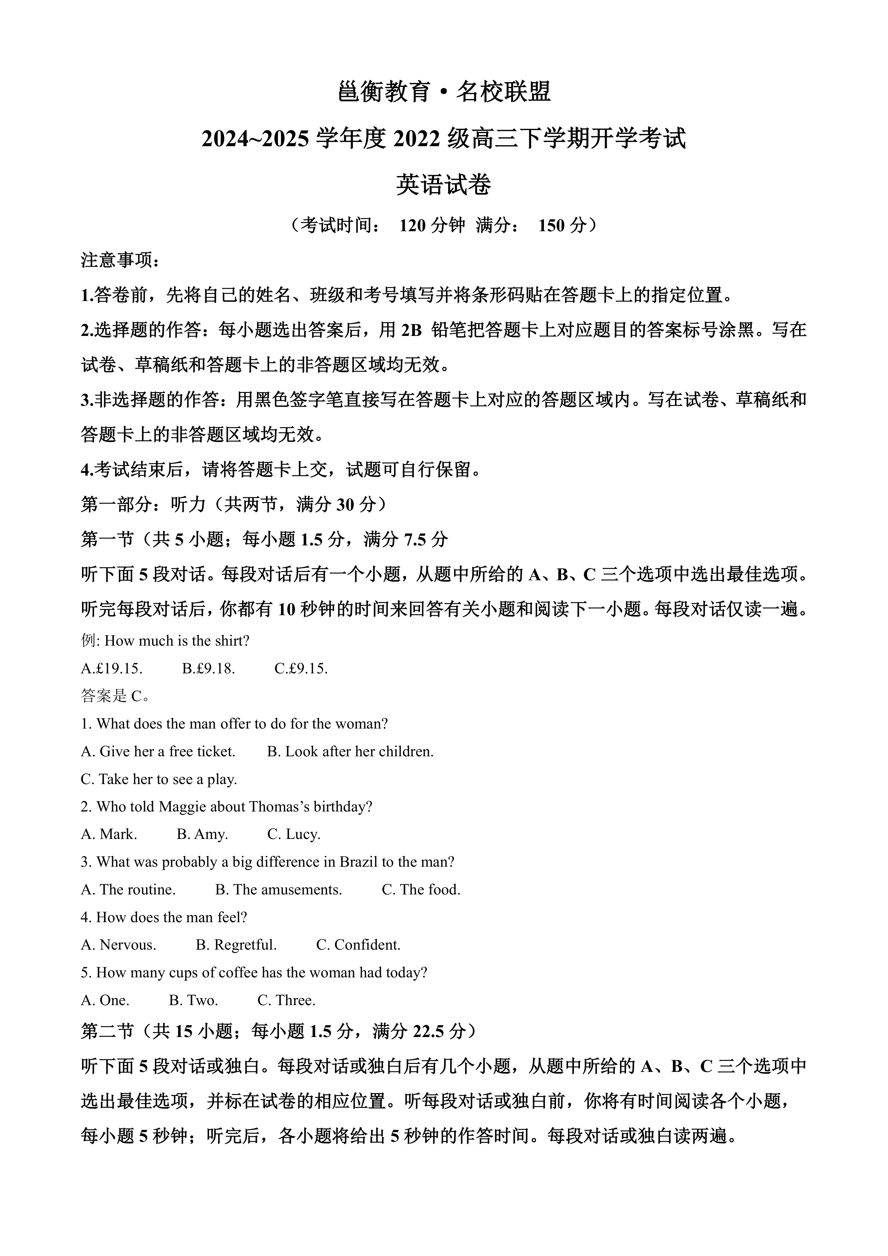 广西邕衡教育名校联盟2024-2025学年高三下学期开学考试英语试题(含答案,无听力原文及音频) 时间:2025-04-05 热度:°C 加入收藏 我要投稿 点赞() 使用智能AI助手解答的问题 yingyu2024邕衡 上一篇:广西南宁市2024-2025学年高三2月月考英语试题(含答案,无听力原文及音频) 下一篇:返回列表