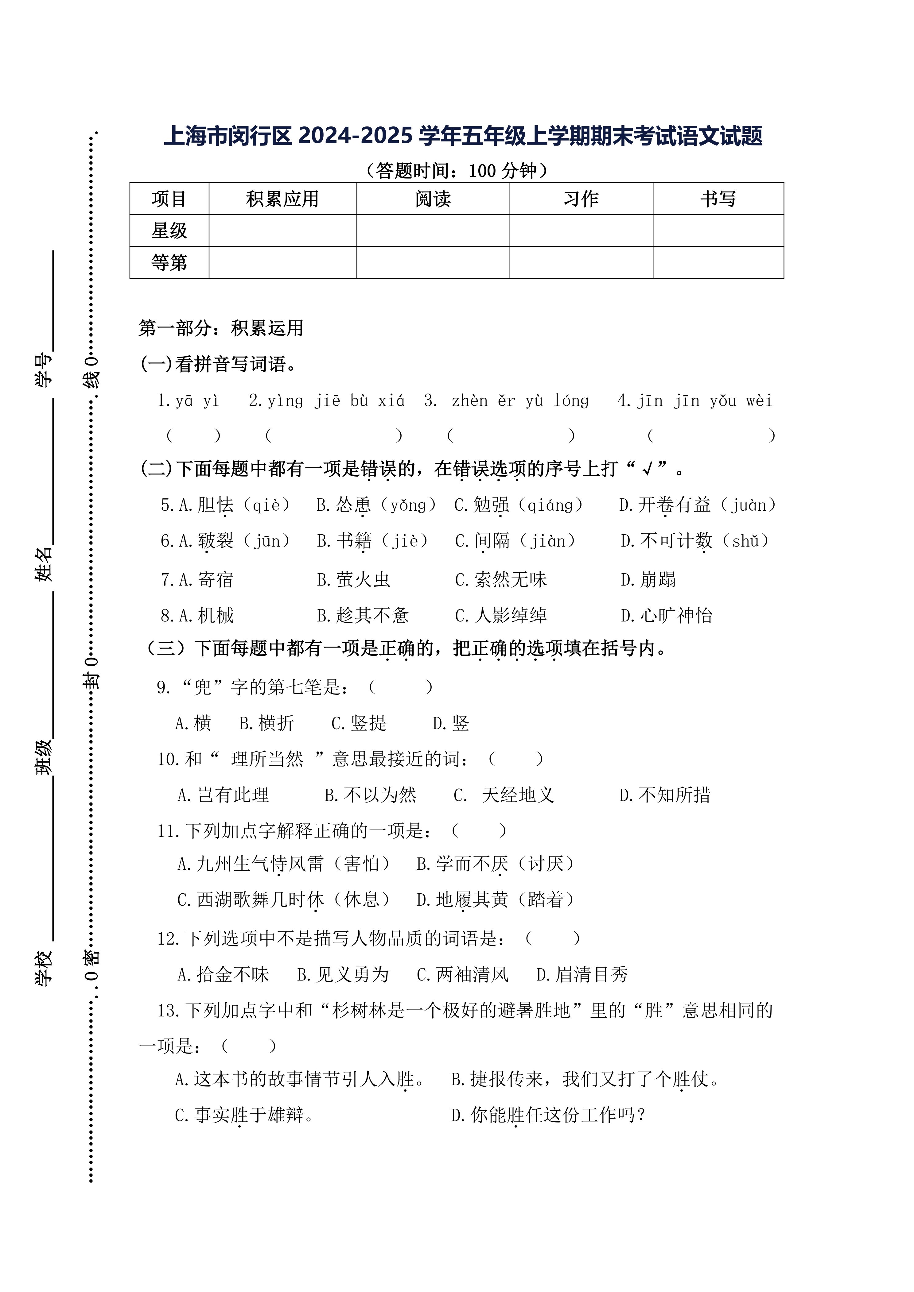 上海市闵行区2024-2025学年五年级上学期期末考试语文试卷(有答案) 时间:2026-01-14 热度:°C 加入收藏 我要投稿 点赞() 使用智能AI助手解答的问题 20242025yuwen 上一篇:江西省萍乡市光丰小学2024-2025学年五年级上学期期末考试英语试卷(含答案,含听力原文,无听力音频) 下一篇:返回列表